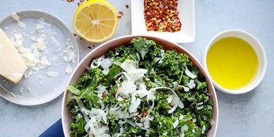 Kale is dark green, and one cup is bursting with approximately 5 grams of fiber! If you haven’t tried it, please run right out and buy some. Really. ..don’t wait! You have no idea what you are missing! Your body will love you for it. Kale is exceptionally nutritious and hardy. When you make kale salad, you can make a large batch, because it will last and last in the fridge and make nutritious eating easy because you don’t have to make a new salad every day. Spice this one up as much as you like!